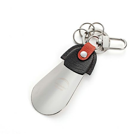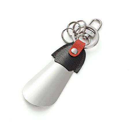 お座敷での会食後など、外出先にて靴を履く姿をスマートに演出することができるキーリング付きシューホーン。