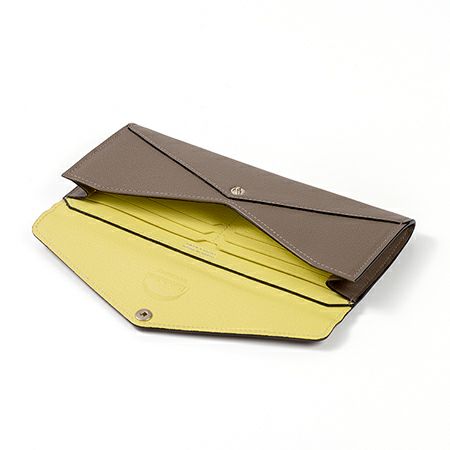 エンベロープ(封筒)をモチーフにしたデザインのロングウォレットです。