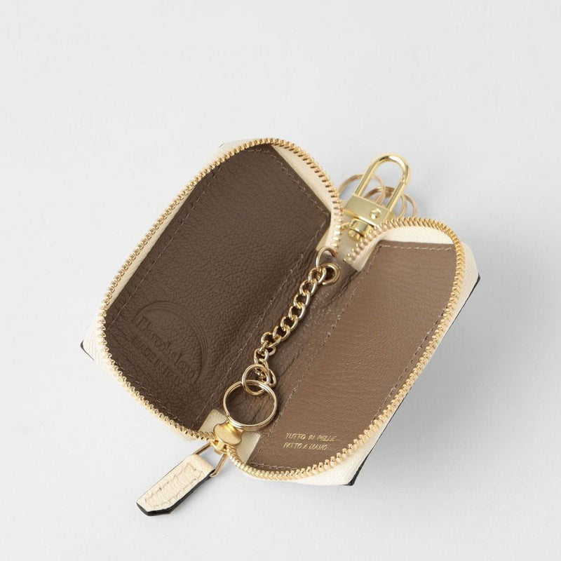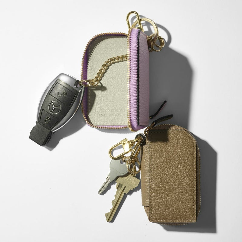 スマートキーをスタイリッシュに収納できるキーケース 外側と内側に異なるカラーのレザーを配し、さりげないバイカラーで仕上げたスマートキーケース。