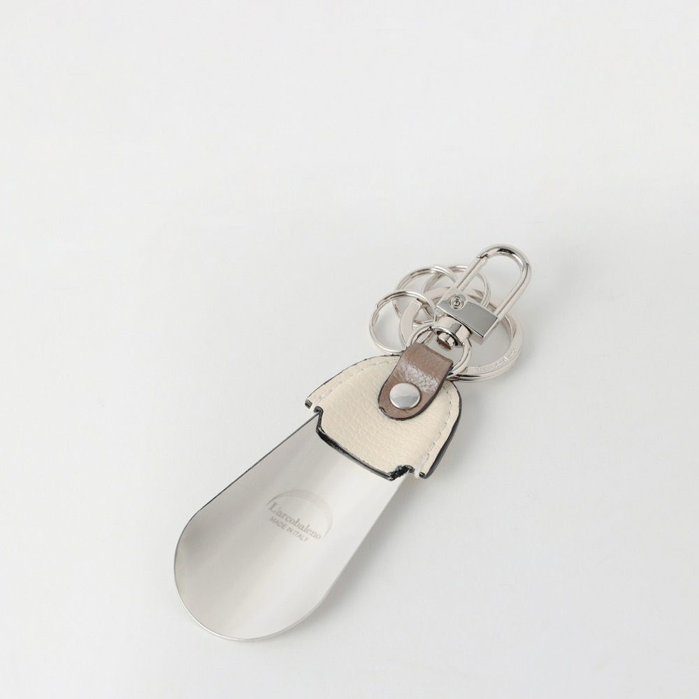 外出先で靴を履く姿をスマートに演出 ベルトループやバッグに取り付けておくことのできるナスカン付のシューホーン。