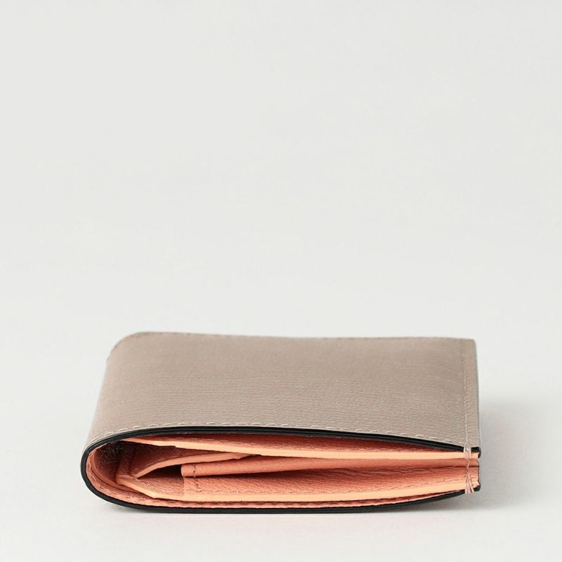 スナップタイプ二つ折りミニウォレット BEIGE*PINK