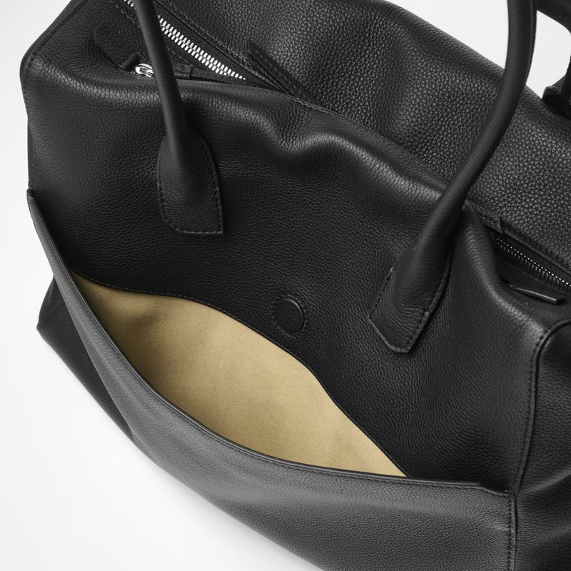 伸縮するデザインで、肩にかけて持ったときの"収まりの良さ"を感じるトートバッグ。