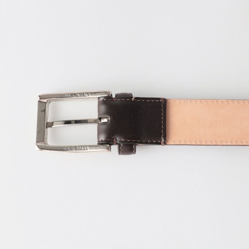 バックルには重厚感のあるスクエアバックルを採用し、上品な雰囲気と強度を兼ね備えた本格的なドレスベルトです。