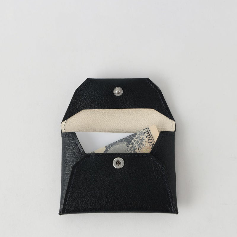 シンプルなデザインながらも小銭だけでなくカード類を収納できるサイズに設定したマルチケース。