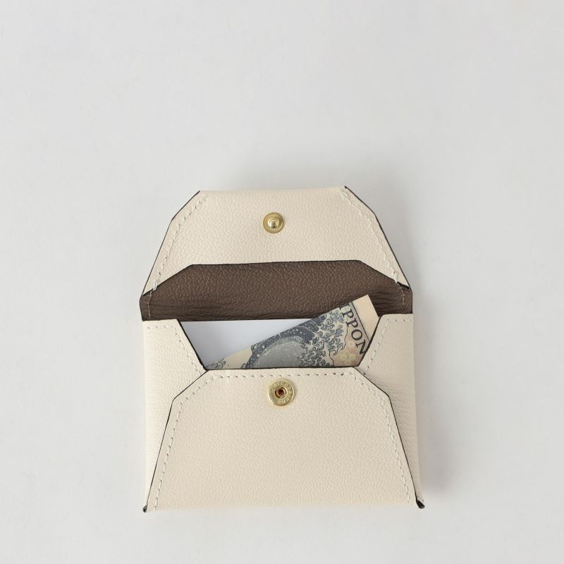 一枚革で仕立てたコインケース シンプルなデザインながらも小銭だけでなくカード類を収納できるサイズに設定したマルチケース。